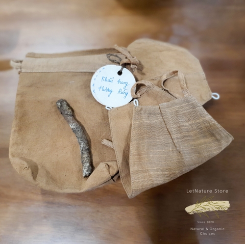Quy cách đóng gói: Bộ sản phẩm bao gồm 01 túi vải đựng, 01 thanh gỗ thông (để ướp tinh dầu) và 02 khẩu trang (trong đó: 01 khẩu trang nhuộm màu củ nâu, 01 khẩu trang được giao màu ngẫu nhiên)