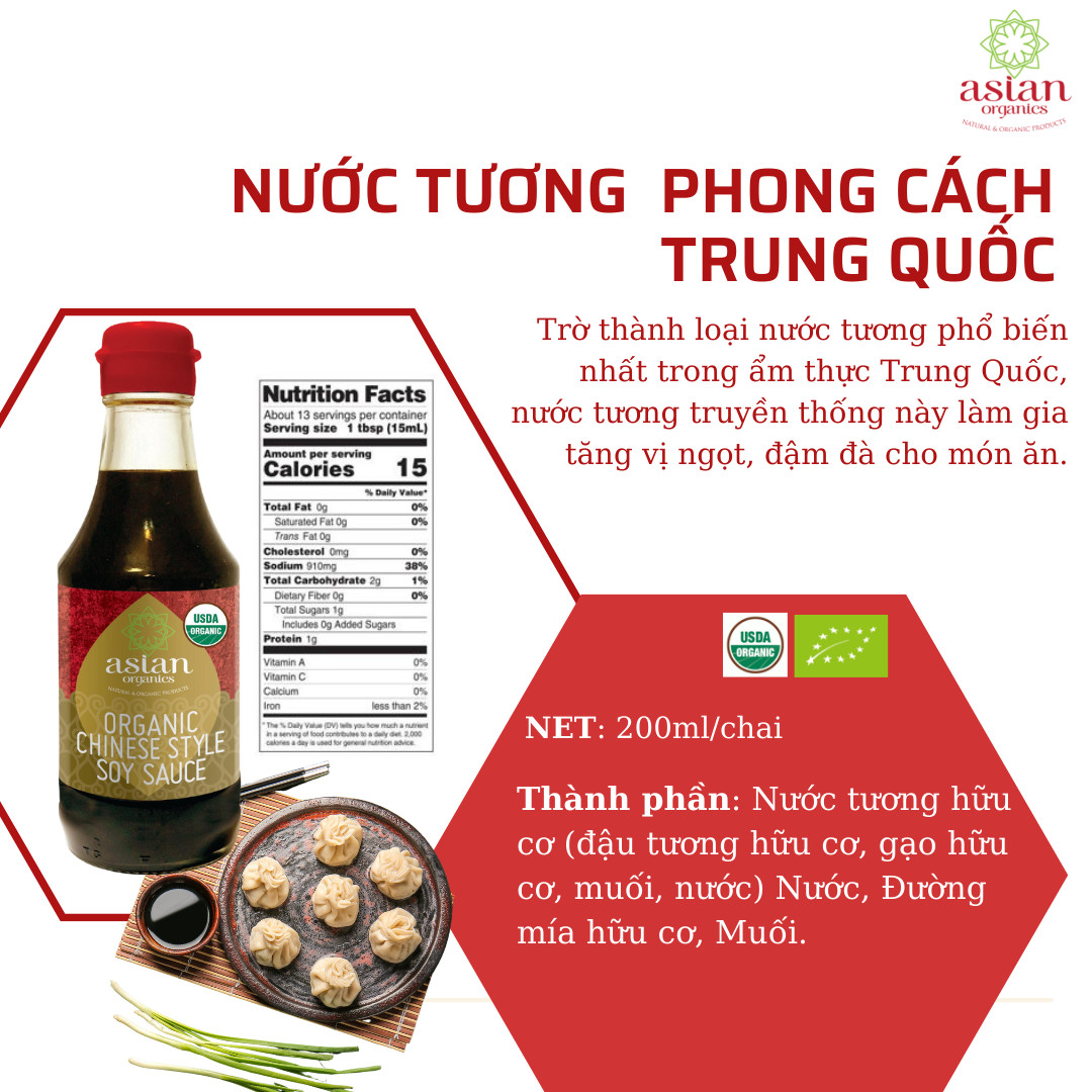 Nước tương đậu nành phong cách Trung Quốc được ủ hoàn toàn mang đến hương vị mặn – ngọt phù hợp nhất cho các món ăn Châu Á chính thống. Dùng để ướp, nêm hoặc xào các món ăn. Chỉ với các thành phần hữu cơ, bạn đang nhận được những gì tốt nhất mà thiên nhiên ban tặng.